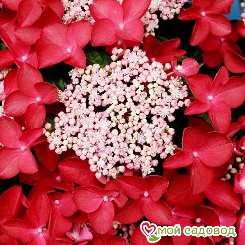 Куст высотой 150 см округлой формы. Листва темно-зеленая, осенью-красная. Соцветия огромные (до 22см!) плоские, состоящими из крупных краевых цветков бордово-красного цвета и мелких розовых цветочков в центре. На кислых почвах окраска прицветников становится пурпурной, почти фиолетовой. Предпочитает влажные, проницаемые, перегнойные почвы, слабокислые или близкие к нейтральным, не переносит известковые. Хорошо себя чувствует в полутени. Очень влаголюбива. Дымогазоустойчива, поэтому идеально подходит для выращивания в условиях города. Требует обрезки слабых и прошлогодних побегов. Морозостойкость средняя: выдерживает понижения температуры до -20°C мороза. Поэтому данный сорт требует тщательного укрытия на зиму. Соцветия после отцветания можно оставить – они имеют привлекательный вид. В нашем интернет-магазине вы сможете купить Гортензия Так же возможно вас заинтересуют Гранат красный «Крымский полосатый» и Гранат Гюлоша розовая .