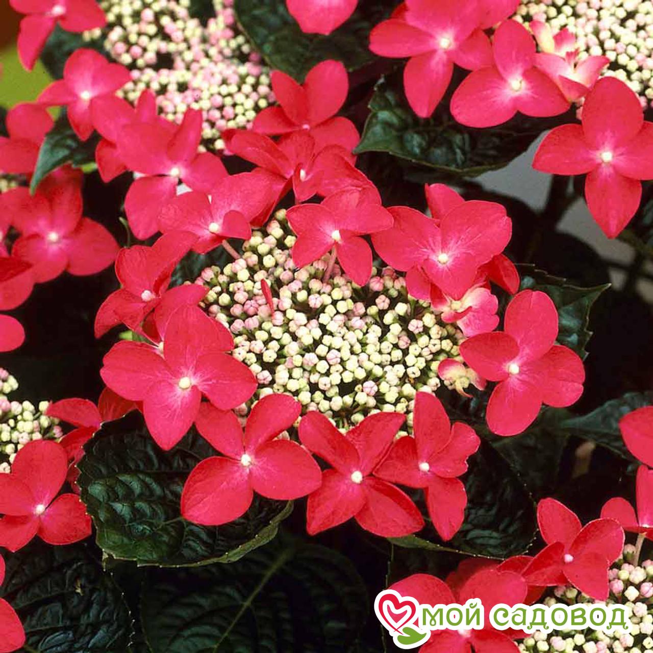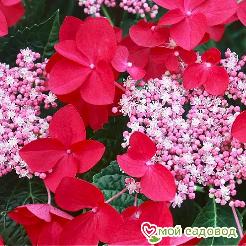 Читать далееКуст высотой 150 см округлой формы. Листва темно-зеленая, осенью-красная. Соцветия огромные (до 22см!) плоские, состоящими из крупных краевых цветков бордово-красного цвета и мелких розовых цветочков в центре. На кислых почвах окраска прицветников становится пурпурной, почти фиолетовой. Предпочитает влажные, проницаемые, перегнойные почвы, слабокислые или близкие к нейтральным, не переносит известковые. Хорошо себя чувствует в полутени. Очень влаголюбива. Дымогазоустойчива, поэтому идеально подходит для выращивания в условиях города. Требует обрезки слабых и прошлогодних побегов. Морозостойкость средняя: выдерживает понижения температуры до -20°C мороза. Поэтому данный сорт требует тщательного укрытия на зиму. Соцветия после отцветания можно оставить – они имеют привлекательный вид.