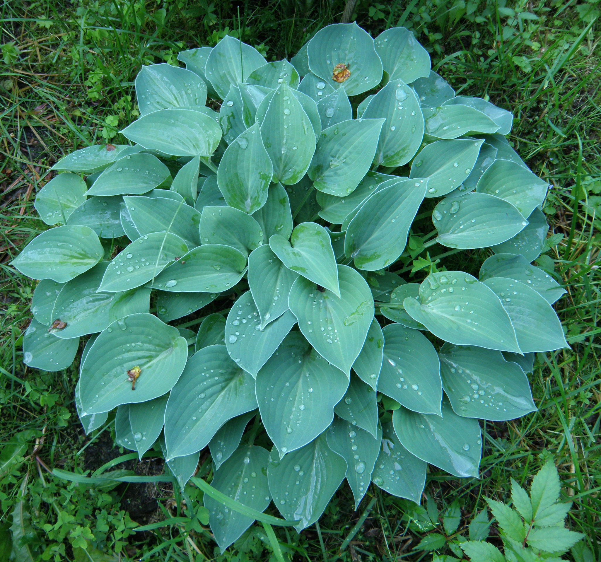 Листья зелено-голубого оттенка, сверху они матовые, и снизу с сизым налетом. Края их ровные, форма сердцевидная. Цветок Блуе Кадет воронкообразный яркого лавандового оттенка, составляет длинные плотные кисти на стебле высотой до 55 см. Цветение происходит в середине лета. Сажать хосту лучше в легкой тени, которая будет держаться весь день. В конце лета листья становятся темно-зелеными, даже, когда кустарник растет на открытом месте. Сорт хорошо подойдет для выведения других новых сортов, от него уже было выведено несколько разновидностей с голубым оттенком листвы. Пересадку переносит легко. Молодые растения влаголюбивы, но избыточного увлажнения не переносят. Если ищите неприхотливое тенелюбивое растение для сада – отлично подойдёт хоста. Культура прекрасно себя чувствует под сенью деревьев, вблизи водоемов, на низинных альпийских горках. Посадка хосты осуществляется весной, начале, конце лета. Уход заключается в регулярном поливе, прополке, рыхлении, мульчировании почвы. Место. Выбирайте для куста полутень – под сенью деревьев, вблизи ручья, озера, в низинах участка. Зона для выращивания должна быть защищена от сильных ветров. Время посадки. Начинайте укоренять растение весной – в апреле-начале мая. Возможна и осенняя посадка хосты – с конца августа до конца сентября. Функия должна успеть укорениться до морозов. При осенних работах не нужно заранее готовить грунт, просто обильно полейте хосту за 2-3 часа до посадки. Почва. Hosta любит суглинистую или подзолистую землю с песчаным слоем на поверхности (10 см). Выращивание цветов должно происходить в почве с pH 6,5-7,5. Готовьте землю с осени – рассыпьте садовый компост, листовую землю, древесную золу, костную муку или перепревший навоз слоем 10 см, перекопайте грунт на глубину штыка лопаты.